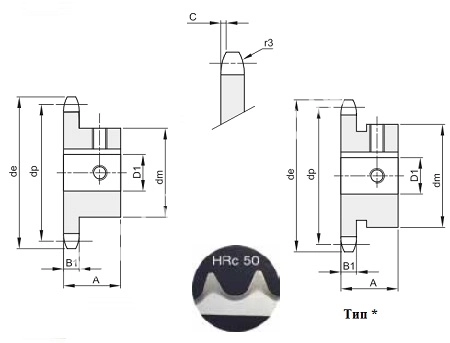 Звездочка для приводных цепей стандарта DIN 8187 - ISO 606 (BS).Имеет готовое отверстие, шпоночный паз, закалку зубьев HRC 50.
