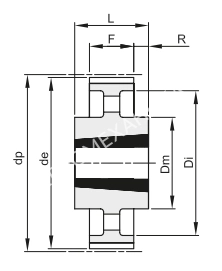 Шкив зубчатый под втулку тапербуш, для ремней с профилем зуба L 0,375'' (9,525mm) и шириной ремня 075 (19,05mm) с числом зубьев шкива Z= 120. Дополнительно комплектуются втулкой для быстрого монтажа и демонтажа. Материал шкива GG. Вес детали 5,61 кг. Торговая марка EMT.Характеристики