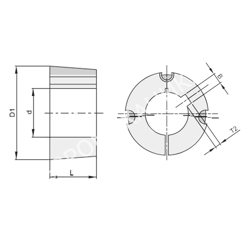 Втулка тапербуш 1008, d=11 мм, EMT с диаметром отверстия 11 мм, изготавливаются из высокопрочного чугуна. Данные изделия упрощают монтаж и демонтаж шкивов, звезд, муфт на валу. Наружная часть конусная. В изделии присутствует отверстие и шпоночный паз согласно DIN 6885/ BS 4235, с наружи покрыты антикоррозионным покрытием, комплектуется винтамХарактеристики